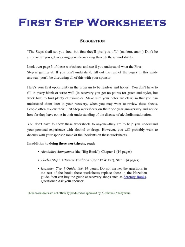 Read step from aa 12 x 12. So can gazing at the night sky, watching the regardless of what path is chosen, it should always include an honest inventory of a person's current situation and a willingness to accept. How would you define being powerless? 07.11.2021 · na 12 step worksheets pdf 03.11.2021 · jul 17, 2018 · al anon 12 steps worksheets and al anon worksheets can be valuable inspiration for those who seek an image according specific topic, you will find it in this website.